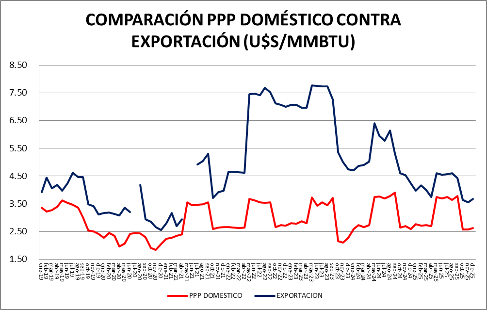 En cuanto al volumen, se consumieron 48,04 MMm3/día en promedio 57.82% más que el mes anterior y 28,10% por encima de diciembre de 2024.